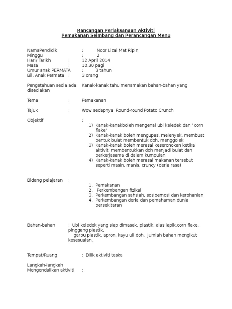 Rpa Ubi Docx Rancangan Pelaksanaan Aktiviti Rpa Kurikulum Permata Negara Tarikh Hari Masa Umur Bilangan Kanak Kanak Tema Tajuk Aktiviti Bidang Course Hero