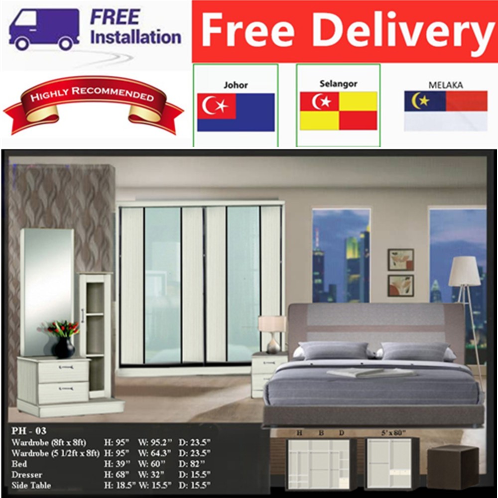 Free Delivery And Installation Perfect Bedroom Set Ph03 Series Wardrobe Queen Bed Dressing Table Set Bilik Tidur Shopee Malaysia