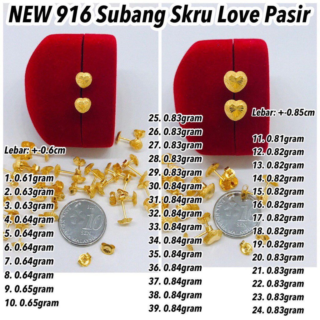 New Gold 916 Subang Skru Love 6 Sept Emas Shopee Malaysia