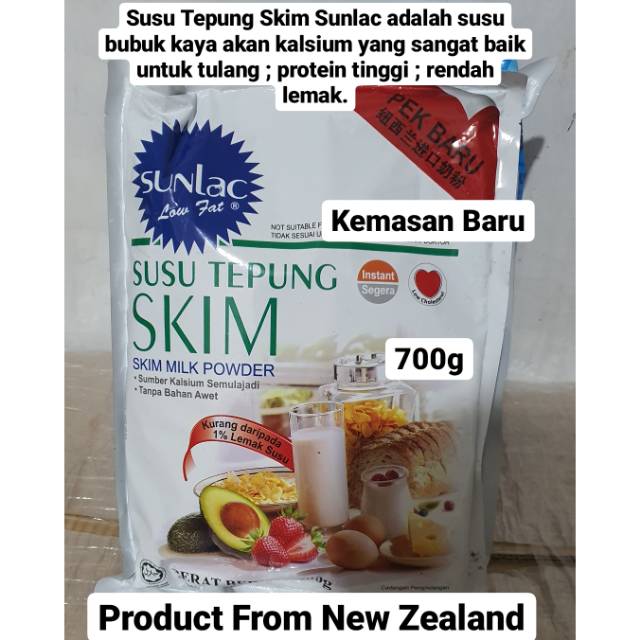 Sunlac Skim Milk Powder 700g Susu Tepung Bubuk Low Fat Rendah Lemak Import Impor Malaysia Shopee Indonesia