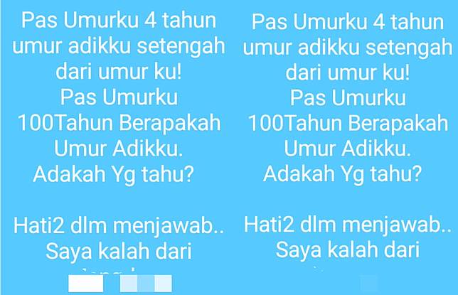 Jawaban Tepat Teka Teki Umur Adik Setengah Dari Umurku Cianjurtoday Com Line Today