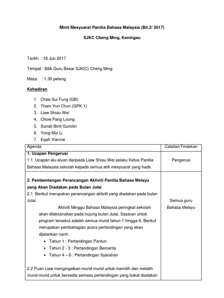 Minit Mesyuarat Panitia Bm